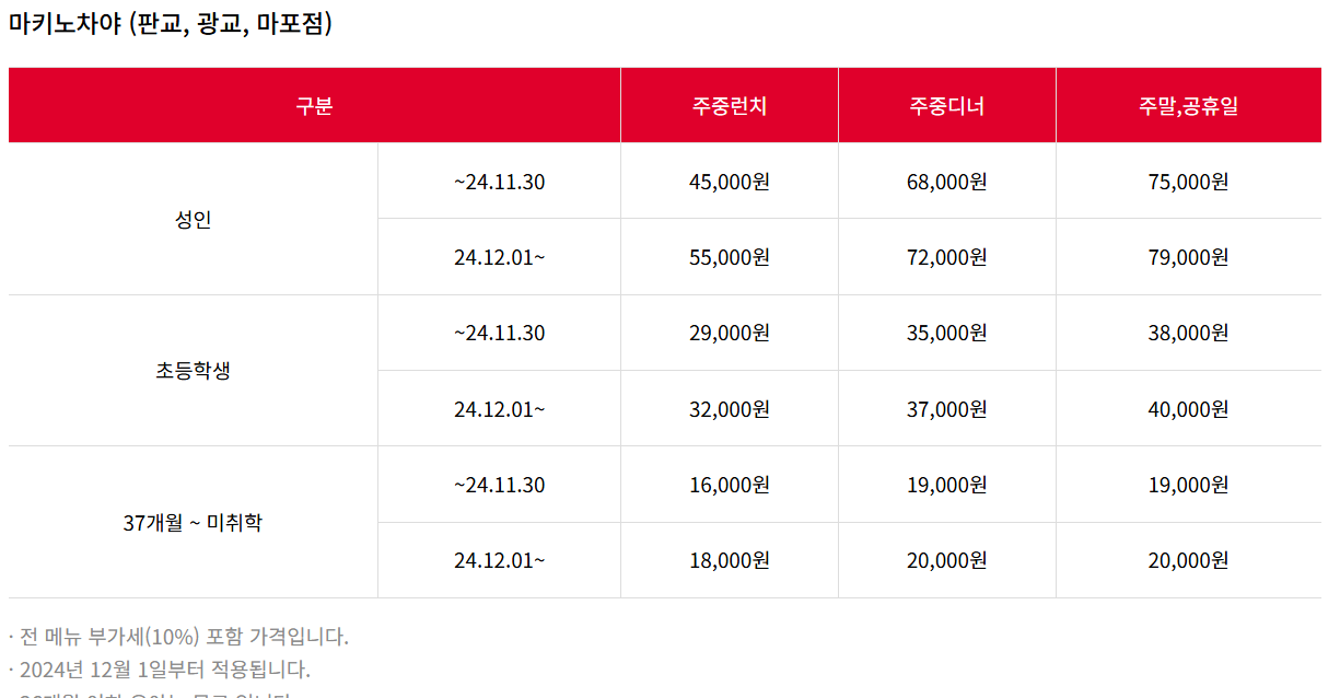 ◆ 가격 정보 (2024.12.01이후 기준으로 확인! ) , 36개월 유아는 무료 입니다.