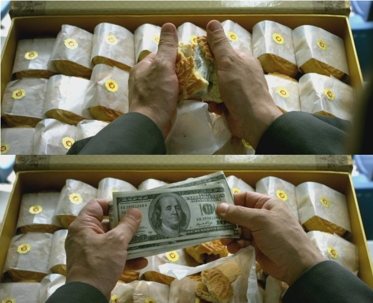 우리나라에서 사과상자, 비타민 상자라면 중국에는 월병 상자, 일본에는 귤 상자가 있습니다. 중국은 명절인 중추절에 전통 과자인 월병을 주고 받는 문화가 있습니다. 이를 이용해서 뇌물을 주고받는다고 합니다. 특별히 월병 상자에 돈을 넣는 것이 아니라 월병 상자 안에 팥 대신 돈이나 귀중품을 넣어서 전달한다는 것입니다. 영화 '신세계'에서도 월병 속에 돈을 넣어 전달하는 장면이 등장합니다. 중국은 더 나아가 월병을 황금으로 만드는 경우까지 있다고 합니다. 최근에는 모바일 결제가 활성화되면서 '사이버 월병'이라는 고액 상품권이 나타났다고 합니다. 일본은 뇌물을 전달할 때 귤 상자에 담아 전달한다고 합니다. 양갱 상다, 케이크 상자에 담겨있는 디저트 안에 귀중품을 넣어 운반한다고 합니다.